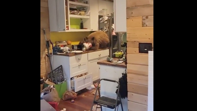 Un homme capture une vidéo d'un ours en train de manger du KFC dans sa maison